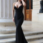 Croiala ampla a fustei, ce cade in valuri, completeaza perfect liniile precise ale corsetului, creând un look sofisticat si seducator.